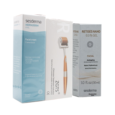 علاج متكامل للندبات العميقة من خلال قوة الريتينول الذي يعمل على اعادة بناء الجلد و تحفيز انتاك الكولاجين كما تساعد الديرما رولر على زياده امتصاص و فاعلية الريتينول في تحفيز الكولاجين كما يعمل على فيتامين سي على توحيد لون البشرة و هيالورنيك اسيد على ترطيبها